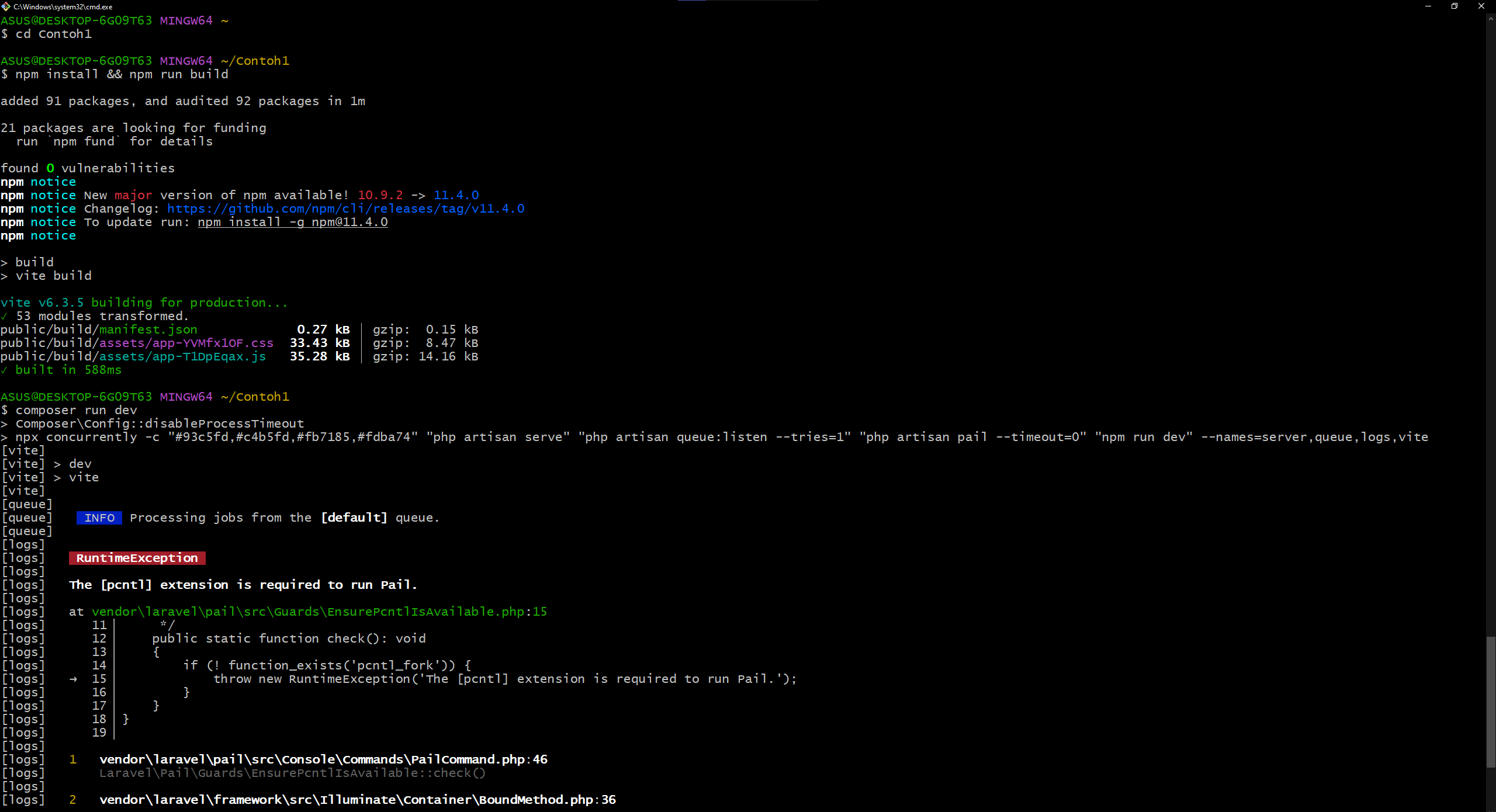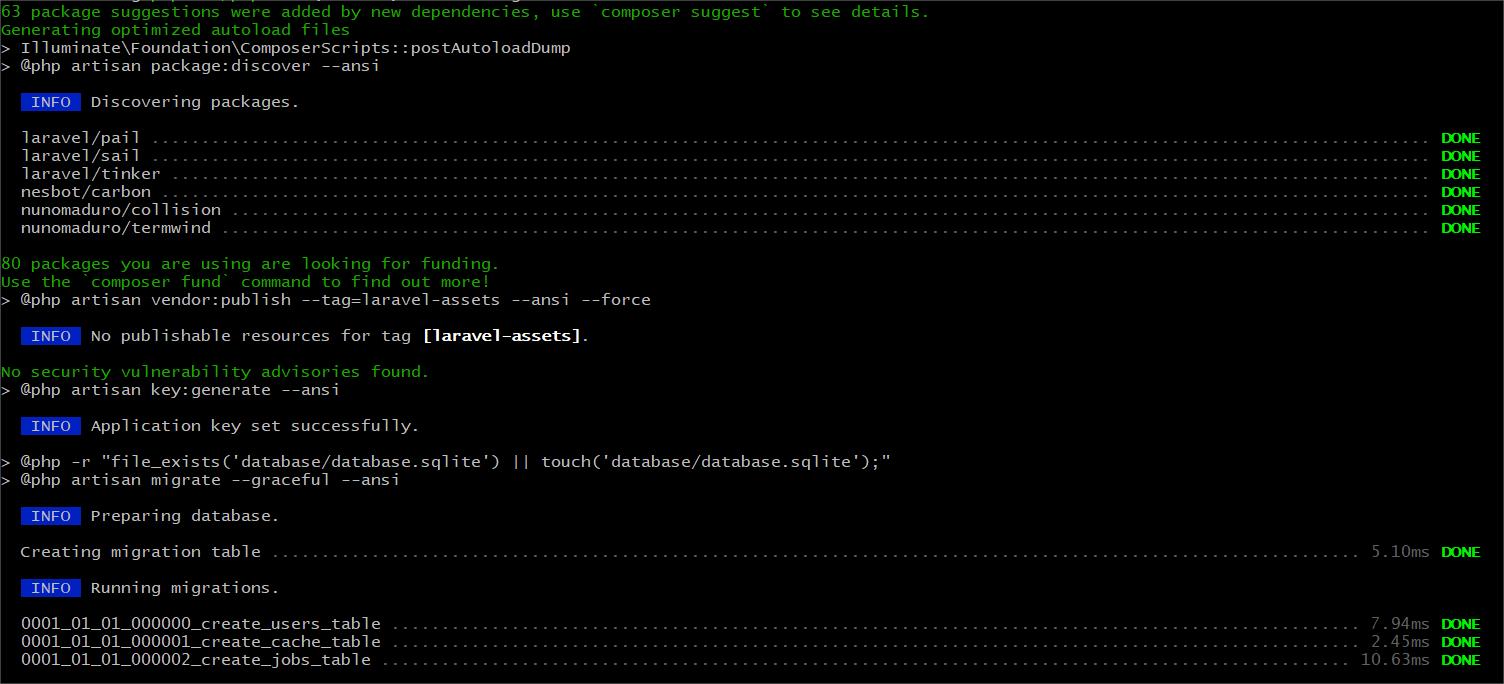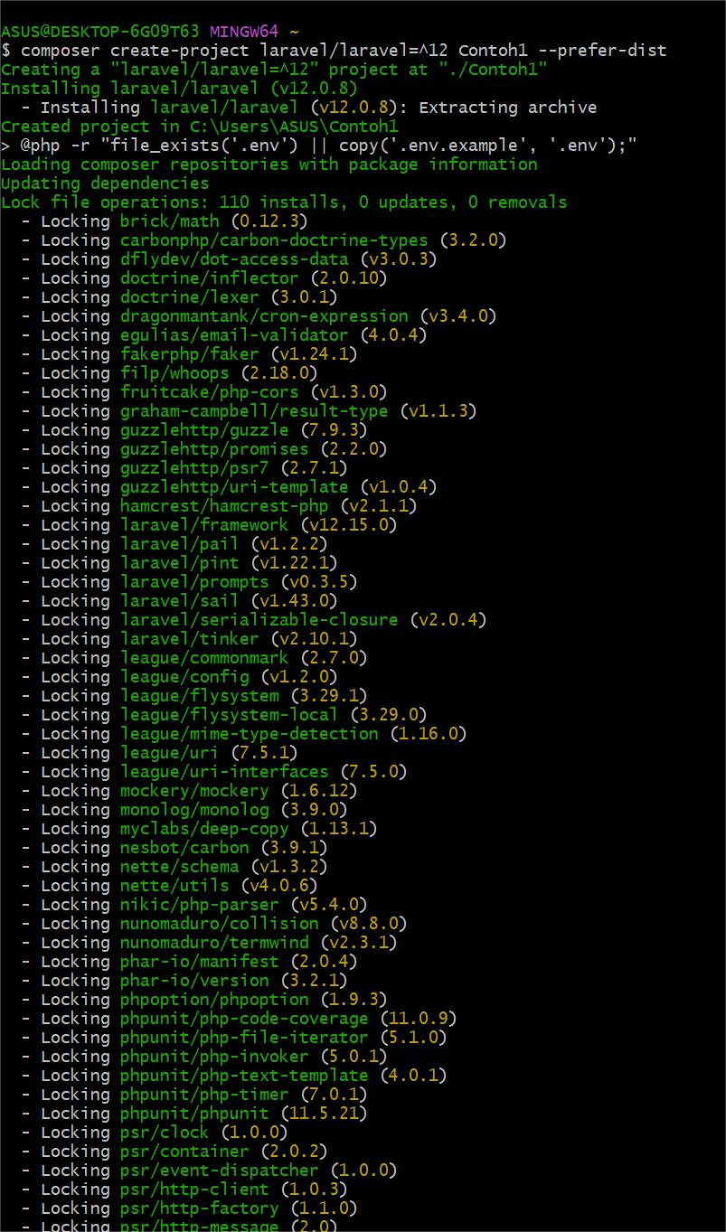 Setelah berhasil membuat project Laravel, selanjutnya masuk ke dalam directory project Laravel dan ketikan perintah berikut: